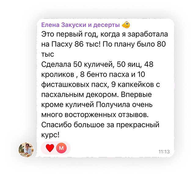 125 куличей и 231 десерт. Ввела в ассортимент заморозку и наборы — выручка выросла кратно.